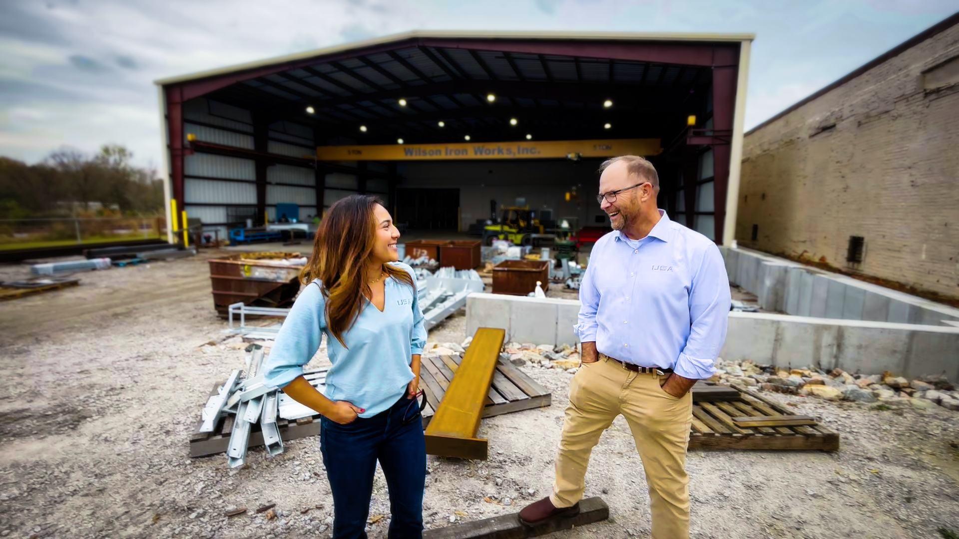 Photo of Jim Cooke outside of Wilson Iron Works, producing an episode of Two Minute Tuesdays with Territory Manager Rubi Cruz.