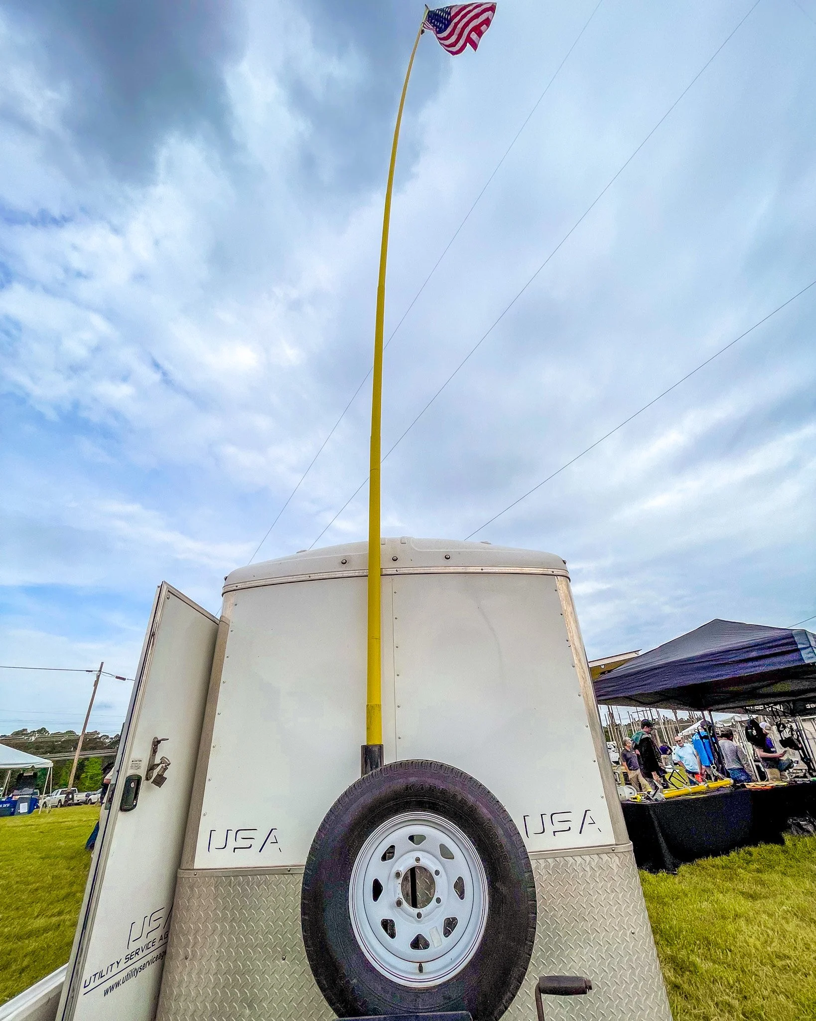 Wade shares a friendly conversation with attendees outside the USA tent, ready to welcome visitors throughout the weekend.